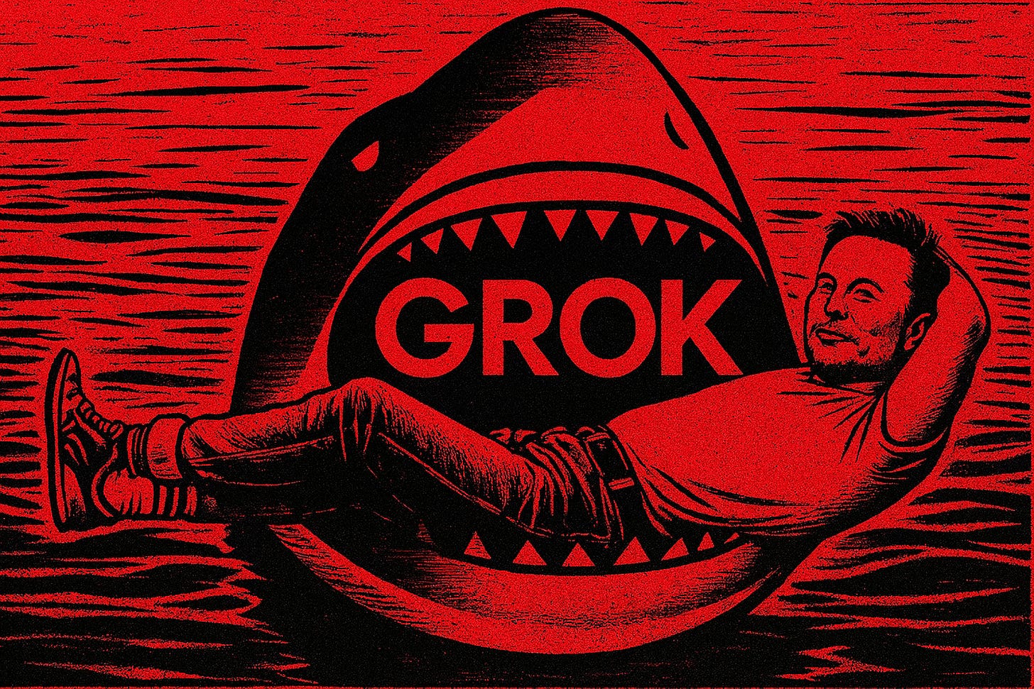 Así como Spielberg desafió al cine con Jaws, reinventando el thriller y marcando el inicio del blockbuster moderno desde el interior del tiburón, Elon Musk reposa en las fauces de Grok como símbolo de su dominio sobre la inteligencia artificial conversacional (a la fecha de esta publicación). Ambos no solo enfrentaron al monstruo —lo habitaron—, transformando su amenaza en herramienta. Spielberg alteró para siempre la narrativa visual; Musk, el flujo del conocimiento. En sus respectivas aguas, el tiburón y Grok representan el miedo y la maravilla que ambos visionarios convirtieron en revolución cultural y tecnológica.